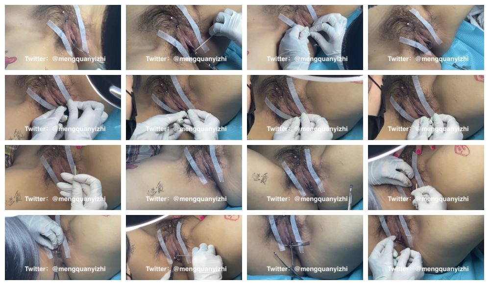 人体整形科偷拍!潮妹来做阴唇上环,阴蒂上钉,烂货骚穴的婊子