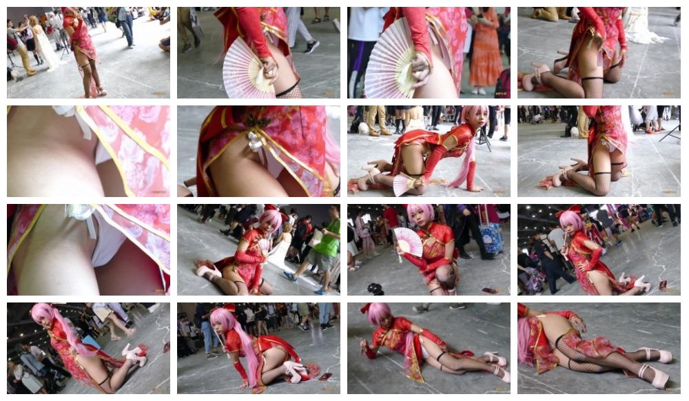 上海漫展COSPLAY 二次元妹子摆PS被TP裙底 小内内没有罩住 貌似刮了毛毛 1080P高清原版